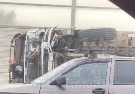 Что именно случилось на дороге неизвестно. Предположительно, водитель бетономешалки врезался в грузовик, а от удара опрокинулся на бок. В результате, движение оказалось ограничено. Автомобилисты медленно объезжают место аварии, что спровоцировало затор