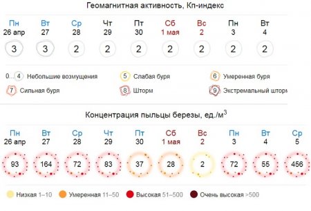 По информации Гисметео, геомагнитных бурь на этой неделе не ожидается, а вот показатели концентрации пыльцы березы в воздухе будут довольно высокими. Держитесь, аллергики!