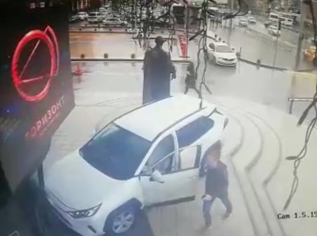 Водитель намеренно заехал по ступеням вверх и врезался в здание в районе входа (ВИДЕО).