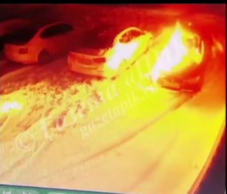 Так, на кадрах видно, как молодой человек подходит к припаркованным автомобилям и затем обливает одну из иномарок горючей жидкостью. После чего он достает огонь и поджигает черный «БМВ». Иномарка молниеносно вспыхнула. В результате огонь перекинулся на соседнюю белую «Кию Оптима». А сам злоумышленник сбежал в неизвестном направлении.