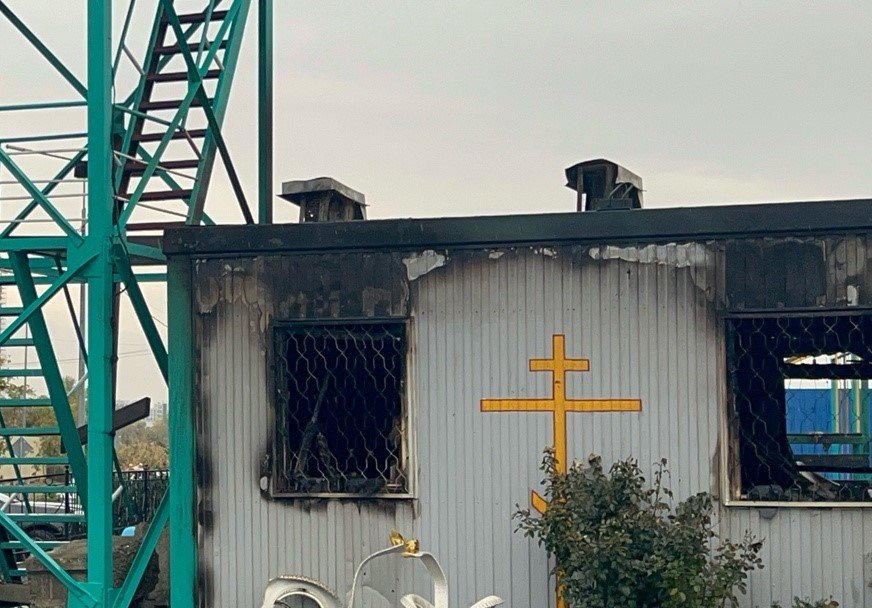 После пожара от храма остались лишь обугленные стены и металлическая конструкция. Иконы, свечи, деревянная утварь и прочие вещи полностью сгорели. Огонь уничтожил значительную часть имущества, используемого для богослужений, и повредил электропроводку.