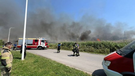 Угрозы жилым домам нет. На месте по-прежнему работают пять спецмашин и пожарные.