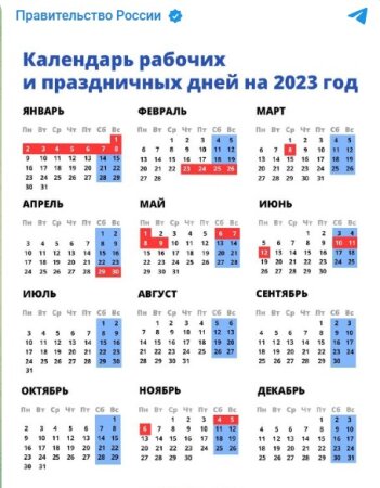 Новогодние праздники начнутся 31 декабря 2022 года и продлятся до 8 января 2023 года. Два воскресенья, выпадающих на это время, «приурочат» к февральскому и майскому праздникам.