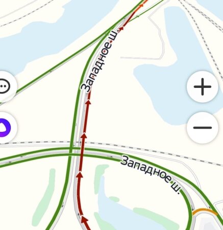 Затор начинается на Северном шоссе и тянется до самого поворота. Общая его протяженность около двух километров. Для того, чтобы проехать это расстояние водителям придется потратить не меньше 15-20 минут.