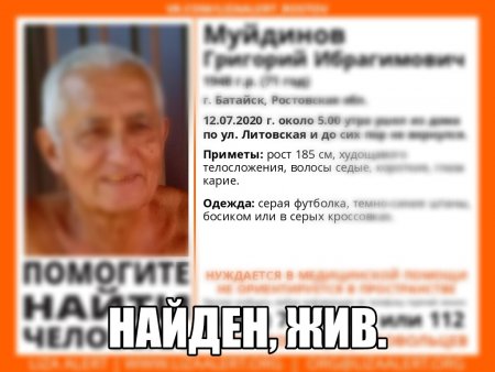 О том, что их дедушка нашелся, сообщили его родственники. Напомним, Григорий Ибрагимович Майдинов вышел в пять утра 12 июля из своего дома с улицы Литовской и исчез.