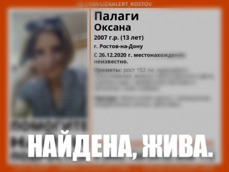 В минувший вторник, 19 января, на странице отряда появилась свежая запись: «Оксана Палаги, 2007 год рождения. Ростов. Найдена, жива».