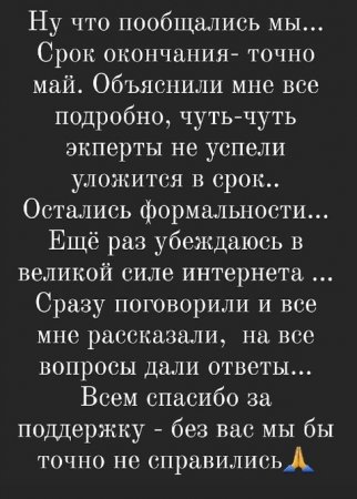 - Встречались мы вчера с начальником СК, и он сообщил, что окончание экспертизы и получение ее заключения планируется в мае. Объяснили мне все подробно, чуть-чуть эксперты не успели уложиться в срок, остались формальности, - рассказала Юлия Лаптева 6 мая.