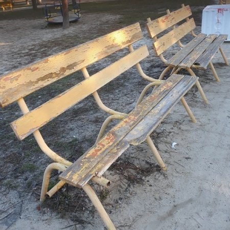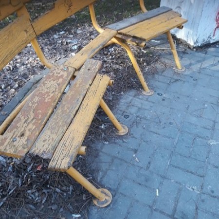 Лавочки в сквере Авиаторов также выглядят устрашающе. Деревянные покрытия повреждены, а где-то совсем отсутствуют. Со скамеек осыпалась старая краска.