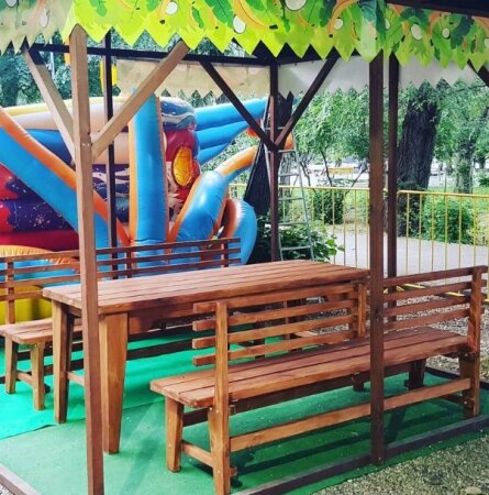 В "Джунглях" в парке есть также уютные красочные беседки, в которых семьи с детьми смогут отдохнуть БЕСПЛАТНО. Беседка в "Джунглях" – идеальное место для детского торжества. Взрослым достаточно купить входной билет в парк аттракционов и принести сладости.