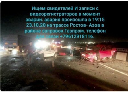 В редакцию Battime 25 октября обратились родственники пострадавших в ДТП недалеко от выезда из Западного Батайска. Они ищут свидетелей крупной аварии на Азовской трассе.