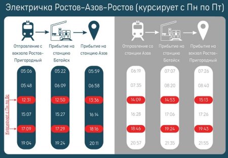 – С 1 октября рейсы двух пригородные поездов азовского направления станут ежедневными: № 6028 Ростов – Азов отправлением в 17:09, прибытием в 18:16 и № 6027 Азов – Ростов, отправлением в 18:46, прибытием в 19:43, - сообщает перевозчик «СКППК».