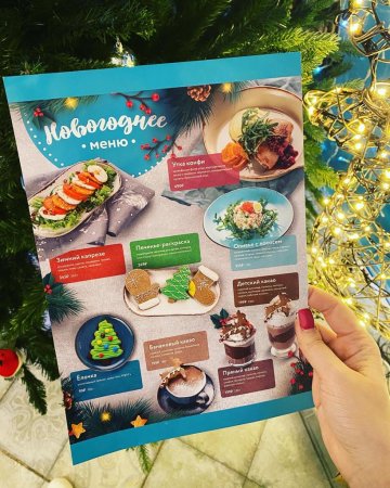Также появилось и новое меню: оливье с лососем, зимний капрезе, утка конфи, шоколадные пряники и три новых вкуса согревающих какао. А детям точно понравится печенье-раскраска (елочки, рукавички, носочки), которое они смогут раскрасить самостоятельно!