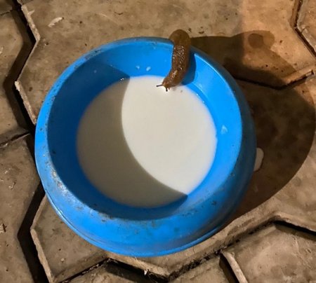 - Теперь в наш двор приползает каждый вечер на ужин и слизняк. И, в отличие от ежика, он кушает все, даже плов! Моллюск довольно большой – примерно 10 сантиметров. Однажды переставили миску в другое место, так слизнячок по привычке ползал и искал еду, - отметила женщина.