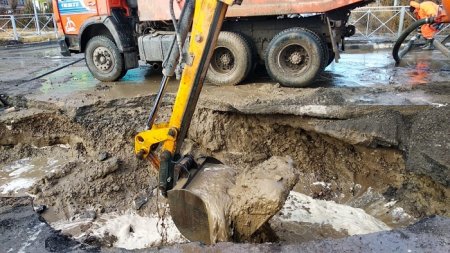 Между тем, восстановительные работы на СЖМ продолжаются. Работники аварийной службы разрыли участок дороги, чтобы отремонтировать трубу диаметром 400 мм. На месте работают две бригады специалистов из восьми человек и три единицы техники. Когда движение на улице будет восстановлено, пока неизвестно.