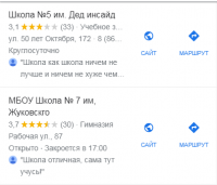Аналогичная ситуация наблюдается и в других городах: Санкт-Петербург, Казань, Тюмень, Белгород, Екатеринбург. Например, на картах нашлись «Детская школа Моргенштерна», «Школа дед инсайдов», «Школа амонгасиков (дурка)» и «Школа имени Кириешек».