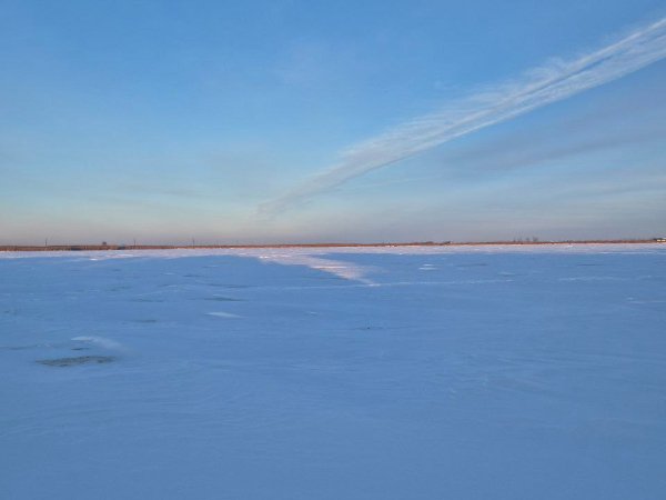Солёное озеро под Батайском зимой 2026 года выглядит непривычно. Поверхность воды сковал лед, а сверху его накрыл плотный слой снега. Очертания берегов практически стерлись и водоем слился с окружающим ландшафтом. Теперь он больше напоминает заснеженное поле, чем озеро.