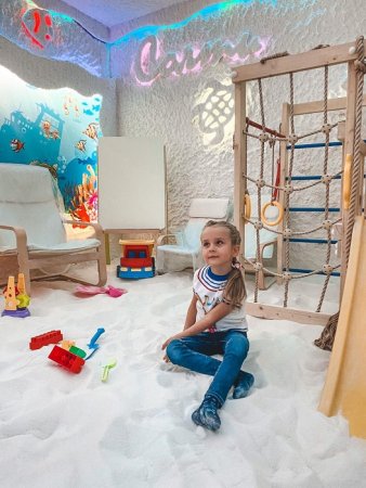 А пока взрослые отдыхают в соляной пещере, детвора тут же получает заряд позитивных эмоций. Продумано все, чтобы детям было интересно во время сеанса. Для них есть большой игровой комплекс, световой столик для рисования песком, вкусные и полезные кислородные коктейли. Хорошее настроение идет в комплекте с укреплением иммунитета!