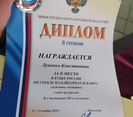 Гребец из Батайска Константин Луненко выступил на Кубке России по гребле на байдарках и каноэ. Соревнования проходят в Краснодаре с 13 по 19 ноября. 17-летний батайчанин завоевал второе место на дистанции 500 метров.