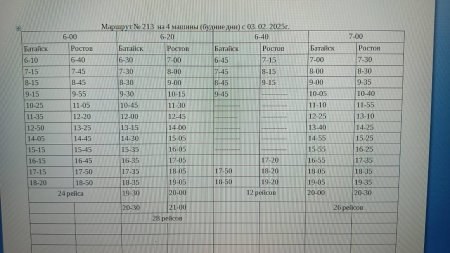 Недавно стало известно, что на маршруте №213 Батайск- Ростов появился дополнительный автобусный рейс. Теперь стал известен новый график работы транспорта с 3 февраля.