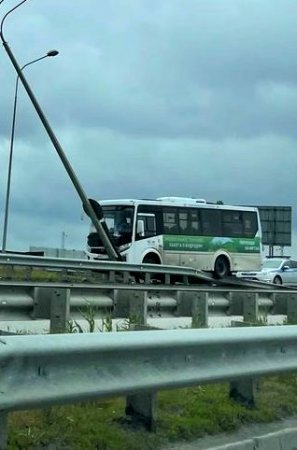 В Ростове 10 мая на Темерницком мосту водитель автобуса врезался в отбойник между двух дорог. Машина до сих пор остается на месте аварии. Об этом 11 мая рассказали читатели «Батайского времени».