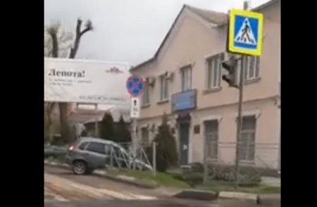 Водитель «Лады» влетел в кювет прямо возле здания ГИБДД. Батайчане отметили картинку: фоном стал билборд со словечком «Лепота» (ВИДЕО).