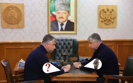 Часы более, чем за 2,5 миллиона рублей исчезли со снимка А. Логвиненко и главы Грозного Х. Кадырова.