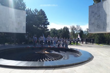 Отправной точкой стала донская столица. Ребята возложили цветы у вечного огня мемориального комплекса «Павшим воинам».