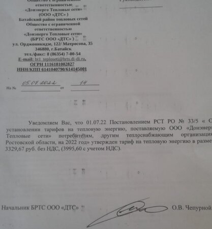 если в прошлом году батайчане платили за тепло 2698,01 рублей за Гкал, то с 1 июля 2022-го «Тепловые сети» согласовали тариф в…3995,60 руб. То есть людям пришлось бы платить на порядок больше, о чем руководитель батайского участка Олег Чепурной предупредил УК и все заинтересованные организации соответствующим письмом 5 июля.