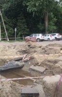 В непосредственной близости от главного памятника воинам-освободителям «Клятва поколений», в деловом центре города, котлован диаметром 8-10 метров появился еще в начале мая. «Батайское время» дважды писало на эту тему. Как пояснили тогда в Ростовском водоканале, разрытие не их рук дело. Дальше выяснилось, что работы ведут местные «Теплосети». Текст так называемого «паспорта» объекта гласит, что на улице Ленина ведутся работы «по ремонту тепловой сети в районе придомовой территории многоквартирного жилого дома по улице Октябрьская, 120-А». Коммунальная казуистика прозвучала непонятно для батайчан, обратившихся в редакцию с жалобами. Ведь между Октябрьской и Ленина, мягко говоря, приличное расстояние. Но жителей удивило другое: ремонтные работы велись на тот момент уже три недели. Причем рабочие выходили на объект не каждый день.