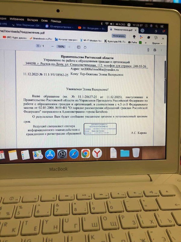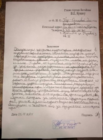 Одной из батайчанок надоело терпеть вечные проблемы с благоустройством в городе. Элина Тер-Осипова, приняла решение обратиться напрямую к Президенту России. В своем письме, батайчанка подробно описала критическое состояние города. Женщина пожаловалась на несанкционированные свалки, на состояние парка, на неухоженные клумбы, мусор, аварийные деревья, разрушенную плитку и на состояние Горбатого моста.