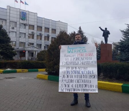 – 9 февраля прошел одиночный пикет по нарушению прав человека со стороны администрации на проведение собраний и митингов по вопросам благоустройства Батайска, - пишет Сагайда.