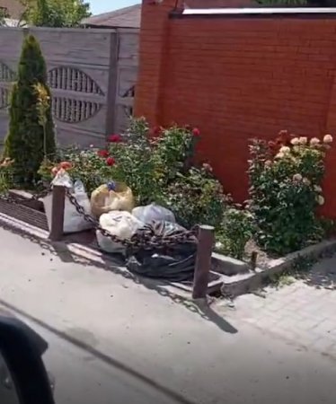 Некоторые домовладельцы вешают упакованные отходы жизнедеятельности на забор, чтобы не растаскивали животные. Другие же вынуждены складировать мешки прямо в цветниках перед домом. Так себе украшение, конечно, а запах можно только себе представить...