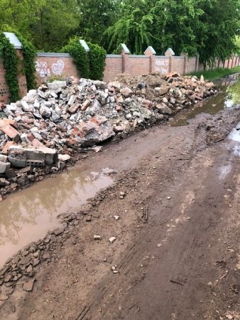 Кучи битого кирпича мешают проходу, а на проезжую часть соседи сливают жидкие отходы. Причем никак не объясняют свое поведение.