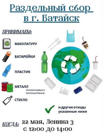 - Жители г. Батайск, вы долго этого ждали! 22 мая с 12.00 до 14.00 по адресу ул. Ленина, 3 состоится акция по приёму вторсырья у населения. Будем всех ждать! - обратился регоператор к горожанам.