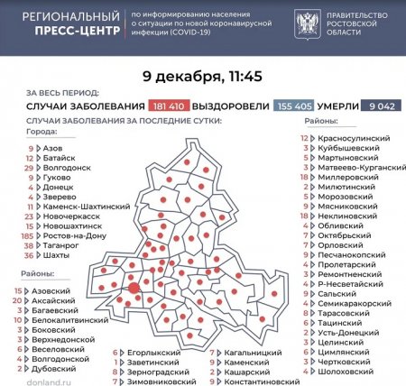 Максимальное число суточных больных зафиксировано в Ростове (185), Таганроге (38), Шахтах (36), Волгодонске (29) и Новочеркасске (23).