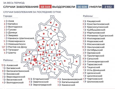 А между тем Роспотребнадзор 12 февраля опубликовал карту распространения инфекции, на которой указано точное количество заболевших коронавирусом в каждом городе. С момента начала пандемии в Батайске всего заразилось 2205 человек. Вместе с восемью вновь заболевшими на 13 февраля это уже 2213 батайчан. То есть 1,7% населения города.