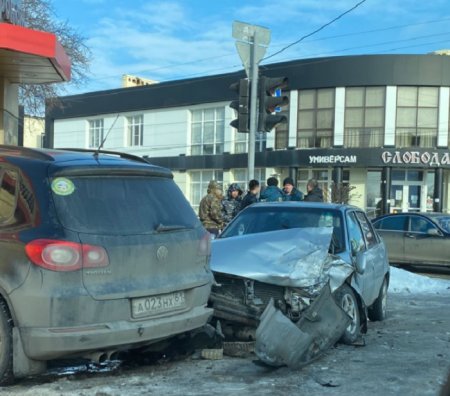 На регулируемом перекрестке с Революционной столкнулись три легковушки. В одной из них, по данным очевидцев, находились сотрудники МЧС (ВИДЕО).