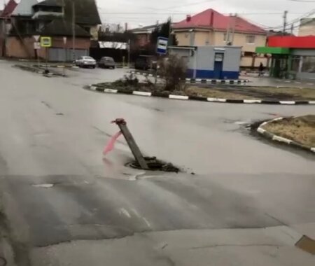На кадрах с места видно, как ловушка расположилась ровно в центре проезжей части. Жители воткнули в дыру длинную палку с красной тряпкой, чтобы автомобилисты не влетели в люк и не оставили в нем колесо.