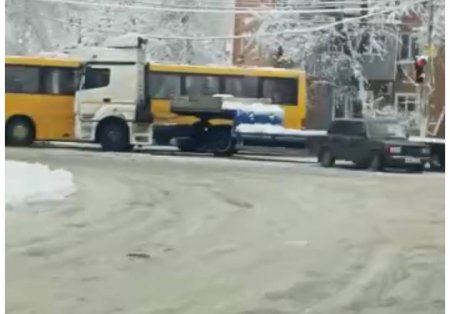 - Вот так вот встретились тягач длинномер и «семерка» и стоят. Как так получилось, непонятно. Небольшой затор был утром, - пояснил мужчина.