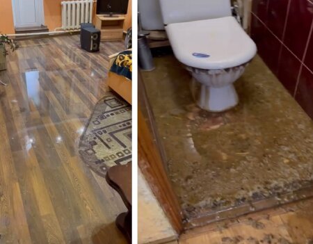 Испражнения потекли из унитаза в квартиру. Если вовремя фекалии не вычерпывать, они разливаются по комнатам (ВИДЕО).