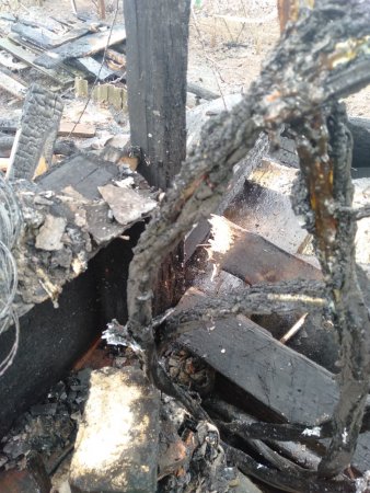 Полностью потушить пожар удалось спустя 20 минут - в 13.43. На фото с места происшествия видно, что постройка полностью выгорела. А огонь чудом не перешел на стоящие рядом деревья.