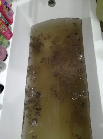 В микрорайоне «Новая Пальмира» на улице Ушинского 24 ноября начались проблемы с водой. Ряд читателей «Батайского времени» прислали фото ванн с черной или коричневой жидкостью. На поверхности воды плавают сгустки пены с запахом.