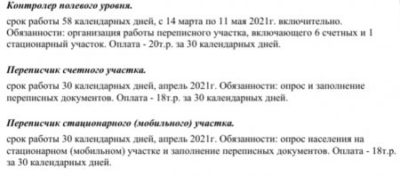 Так, ОГС Батайске осуществляет предварительный набор персонала на три позиции. Это контролер полевого уровня, переписчик счетного участка и переписчик стационарного (мобильного) участка (условия и зарплату можно увидеть на фото). Кстати, все работы осуществляются с использованием служебного планшетного компьютера.