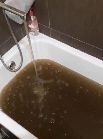 Так, на кадрах видно, как из крана течет коричневая жижа. По словам Дениса, жидкость часто пахнет тиной, как и в этот раз. Кроме того, после того, как мужчина слил грязную воду, на дне ванны осталось около 5 мм песка и ила.