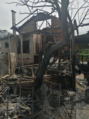 Напомним, жилой дом загорелся по адресу 3-я линия, 153 в ДНТ «Труд» сегодня ночью. Около 6 часов утра запах дыма почувствовал сосед, который и вызвал пожарных. Прибывшие пожарные расчеты потушили открытое пламя, но к этому времени шансов спасти жилье уже было немного. И дом, и хозпостройки полыхали вовсю. К счастью, в этот момент жильца, одинокого пенсионера, дома не оказалось. Об этом подробнее рассказала Елена, родственница 68-летнего Валентина Груздова.