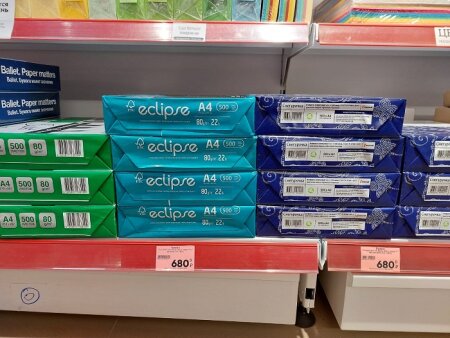 Последние пачки бумаги распродали вчера утром и в «Офисмаге». С ажиотажным спросом пытались бороться, ограничивая отпуск товара не более 20 пачек одного вида бумаги в руки. Но и это ситуацию не спасло. Там теперь тоже пустые полки. Нет у сотрудников гипермаркета и информации о сроках поступления бумаги.