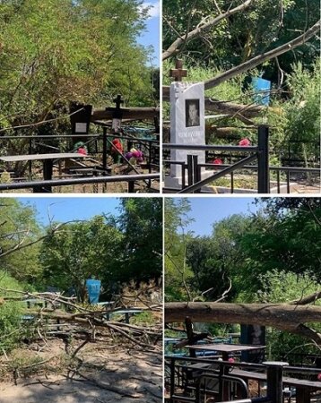 Сразу на несколько захоронений на кладбище в Красном Саду обрушилось сухое дерево.