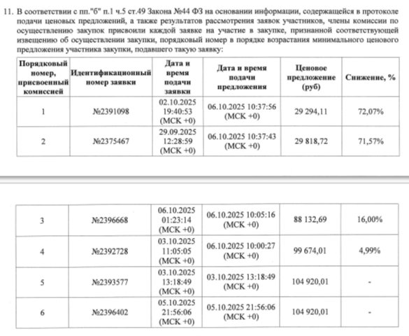 Аналогичная ситуация сложилась и во втором тендере на 4,6 миллионов. Там стоимость единицы услуги уменьшилась на 72,07%, то есть до 29 294 рублей.