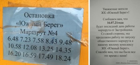 Так, сейчас люди добираются до вокзала или ближайших транспортных артерий «четверкой». Однако это возможно только утром или в течение дня. Поскольку последний автобус по маршруту №4 идет из района в половине седьмого вечера. Дальше людям остается либо такси,либо идти пешком. Между тем до ближайшей остановки общественного транспорта 20-30 минут ходьбы.