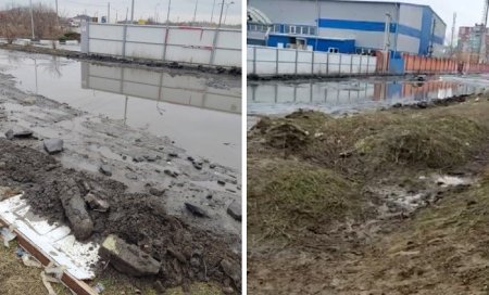 На фото и видео видно, как местные жители в резиновых сапогах, бредут через лужу. Иногда люди пытаются обойти препятствие по раскисшему пригорку. Общая картина печальна – не верится, что все это происходит в городе с многочисленным населением, а не в глухой деревне.